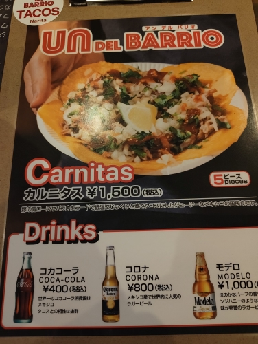 ドリンクには、メキシコの定番ビール「コロナ」も用意されており、タコスとの相性は抜群です。