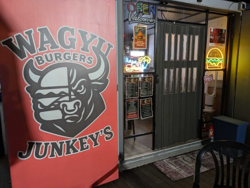 Midway down Omotesando, the eye-catching pop tapestry of “WAGYU BURGERS JUNKEY'S” signals the arrival of “Naritasan Junkies.” True to its name, this popular spot has people hooked on its “junkie-like” appeal after just one bite.