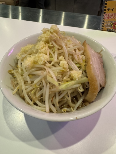 看板メニューは、力強いスープと太麺が特徴の二郎系インスパイアの一杯。野菜もしっかり、チャーシューもしっかり。満腹になりたいという欲望にこれでもかと応えてくれます。